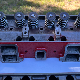 A machinist who lives a couple of counties away here in Ohio did the work of installing new guides, valves, seals, seats, and springs per my inventory. The valves are stock at 1.54 exhaust and 1.92 intake, but the springs will provide over .500 lift! With the camshaft I have selected I am going to need that much travel for the valves. Y Blocks are known to like quite a bit of lift at the valve. A short while ago I decided to paint the heads since it may be a few months before I can begin assembly of that 312. I do have plans to finish up the mild port work, clean them thoroughly, and check the cc measurements before I install them. I want to be dead on concerning static compression ratio. Of course, the tentative plans are to document the full build by subsequent posts here on the website and also via my YouTube video series.