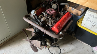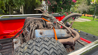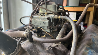 So what would I bring to the show? Y Blocks on run stands sporting Holley 4000 carbs! Just last week I got this idea while traveling from Cincinnati, OH to Emerald Isle, NC. (Long trip, I know...) Just the night before, my dad had alerted me to a post made in the Y Block Facebook group concerning two truck engines for sale. The location was only 30 minutes from where my parents live. On a whim, I called the owner that Thursday morning when I stopped for coffee in southeastern Ohio. He told me that one block had been rebuilt and he had it running on a stand just a little while back. The other was a core block that had been sitting for an unknown amount of time. Since the owner only wanted $200 each, and since I was unsure of the "rebuild" of the first engine mentioned, I told him I would take both for asking price if I showed up that evening and he would help me load them up. (Going to Emerald Isle, I had to pass right by my parents' house.) Sure enough, I pulled into Quentin's yard at 7:30 pm and noticed the core Y Block was already outdoors waiting to be loaded. The other block was still on a stand inside a small utility building.